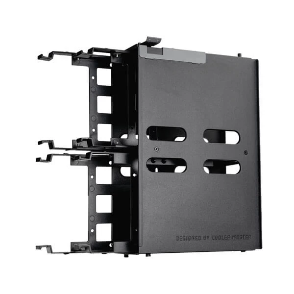 Multifunction, repositionable brackets can be used to mount SSDs, HDDs, or pumps/reservoirs for liquid cooling.