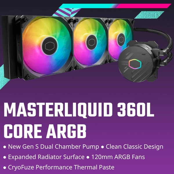 Cooler Master has built upon the classic MasterLiquid L Series to present a redesigned and improved release of the MasterLiquid 360L Core ARGB. Featuring new design elements that bring a classic minimalist look to the series, the MasterLiquid 360L Core ARGB represents Cooler Master’s ongoing innovative spirit.