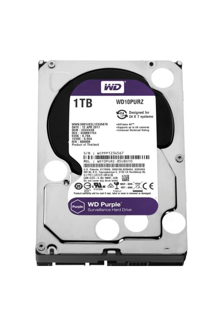 Engineered for 24/7 operation in all sizes of mainstream surveillance DVRs and NVRs. With support for more than eight bays and tarnish resistant components, WD Purple drives deliver reliable operation in larger scale surveillance systems in harsher environments.